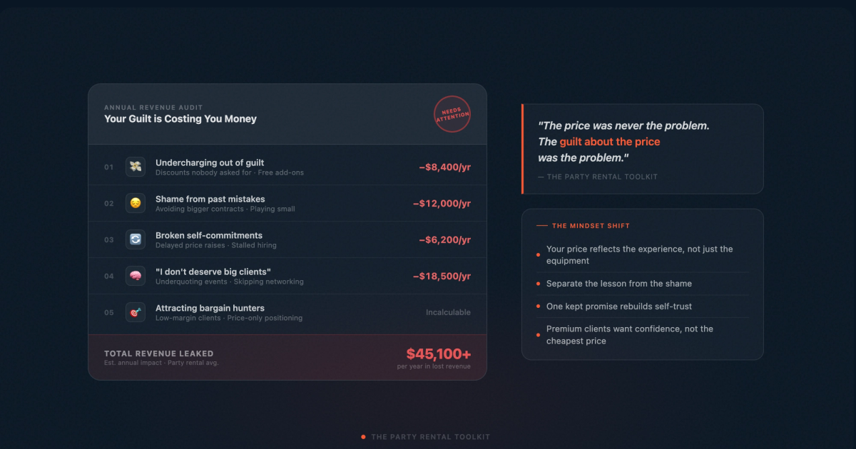 But here is the truth. Guilt is one of the biggest revenue killers for small business owners, and it is costing party rental companies thousands of dollars every single month.